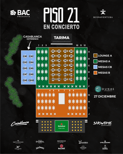 Elige tu experiencia: Casablanca Experience, Mesas A, Mesas B o Heineken Stage View.